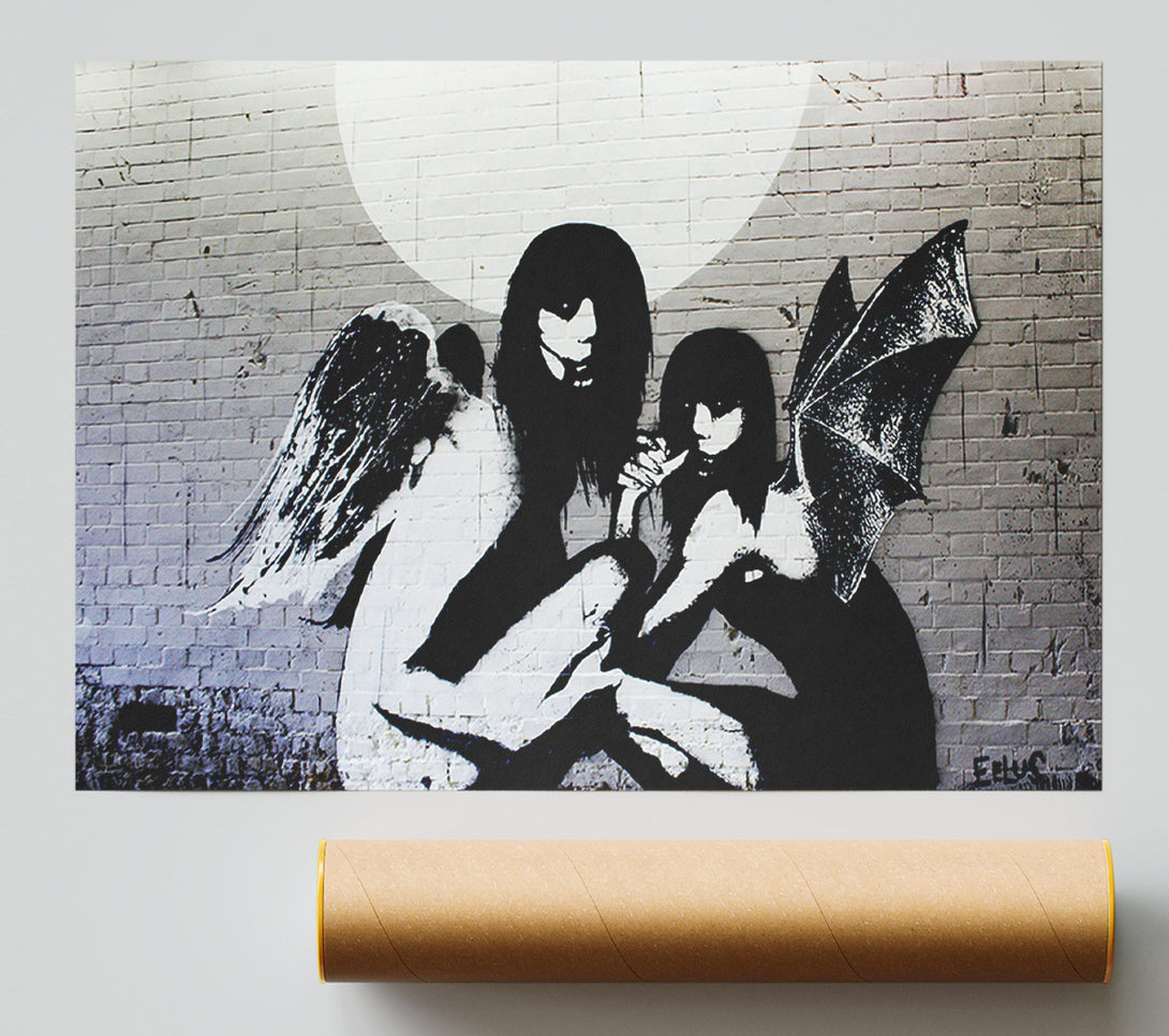 Our Banksy Angels In Moonlight Poster is printed 260 GSM premium lustre paper that offers vibrant colours and exceptional detail.