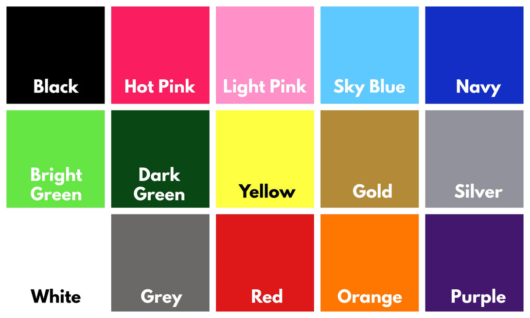 Please specify your preferred colour and shape in the customization box. Each pack comes with ONE colour/shape choice per order. Choose from a range of standard colours such as black, hot pink, light pink, sky blue, navy blue, bright green, dark green, yellow, gold, silver, white, and grey.
