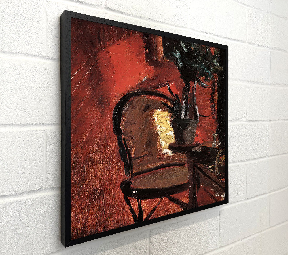 Anna Ancher Chair With A Plant In Front Of Red Wall