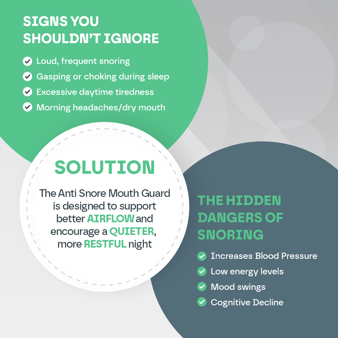 Enjoy peaceful nights with our anti-snoring mouth guard, designed to keep airways open and eliminate snoring. Its lightweight, custom-fit design ensures comfort and stability, promoting restful sleep for you and your partner. Experience the tranquillity of uninterrupted nights!
