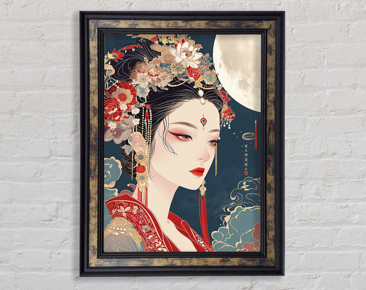 The Asian Woman Moon Framed Print is a stunning piece of framed art that will elevate any space. Handmade in the United Kingdom, this print captures the serene beauty of an Asian woman under a glowing moon. Available in six sizes, ranging from small to oversized, this print fits perfectly in any room, whether you want a subtle touch or a bold statement. Choose from a variety of colors to match your decor. Each piece comes ready to hang, making it easy to add elegance to your home instantly. Enjoy the craftsmanship and attention to detail that goes into every handmade print.