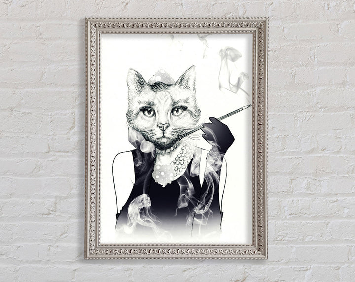 Elevate your home décor with the Audrey Hepburn Cat Framed Print, a charming blend of elegance and whimsy. This framed art piece features a captivating image of Audrey Hepburn portrayed as a stylish cat, perfect for adding a touch of sophistication and fun to any space. Available in six sizes, from small to oversized, you can find the perfect fit for your wall. Choose from a variety of frame colors to match your interior style. Each print is handmade in the United Kingdom, ensuring high quality and attention to detail. Ready to hang, this unique artwork is a delightful addition to your living room, bedroom, or office.