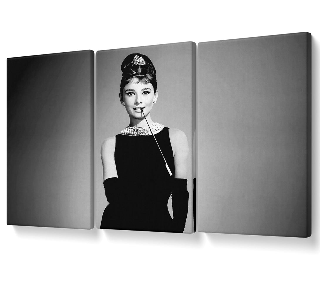 Audrey Hepburn Cigarette Breakfast At Tiffanys canvas, printed on coated polyester canvas. Mounted on to a 44mm box frame, ready to hang.