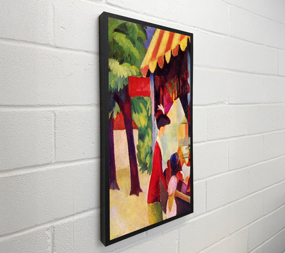 August Macke Before Hutladen Woman With A Red Jacket And Child