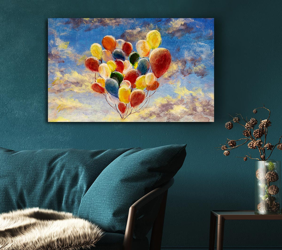 Brighten up your wall with the stunning Balloons In The Sky Canvas Print. This beautiful artwork captures colorful hot air balloons floating against a clear blue sky, bringing a sense of adventure and freedom to your space. Available in five sizes, from small to oversized, it can perfectly fit any room. The high-quality canvas material ensures durability, while the vibrant colors stay vivid over time. Easy to hang, this canvas print transforms your living room, bedroom, or office into a lively and inspiring area. Enjoy a touch of whimsy and elevate your decor with the captivating Balloons In The Sky Canvas Print.