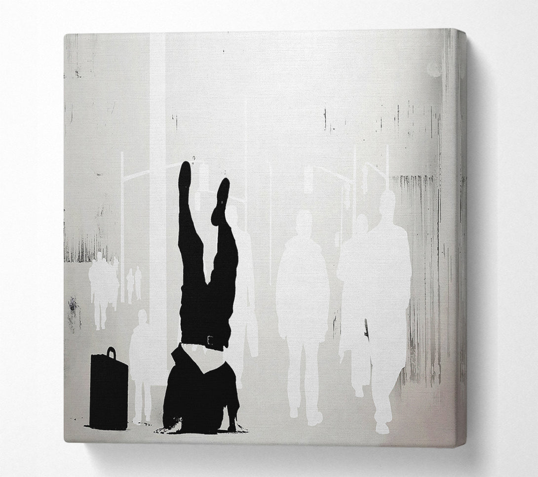 Bankers Head In The Sand square canvas square canvas, printed on coated polyester canvas. Mounted on to a 44mm box frame, ready to hang.