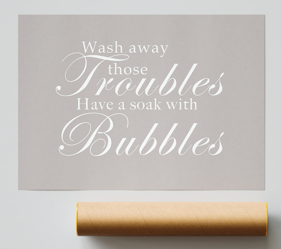 Our Bathroom Quote Wash Away Those Troubles Beige Poster is printed 260 GSM premium lustre paper that offers vibrant colours and exceptional detail.