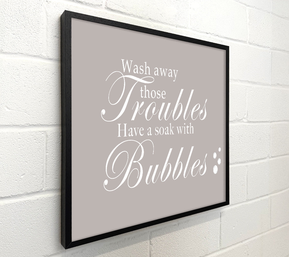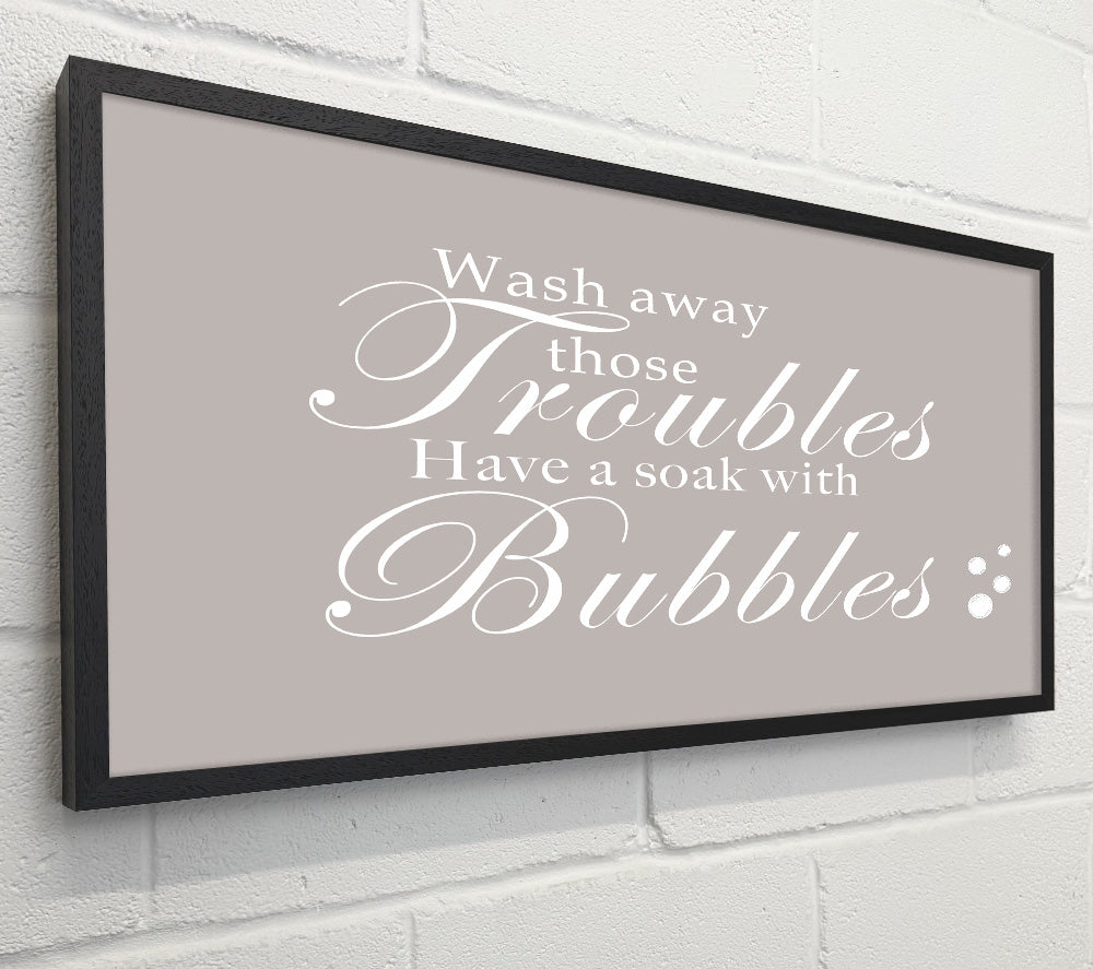 Bathroom Quote Wash Away Those Troubles Bubbles Beige