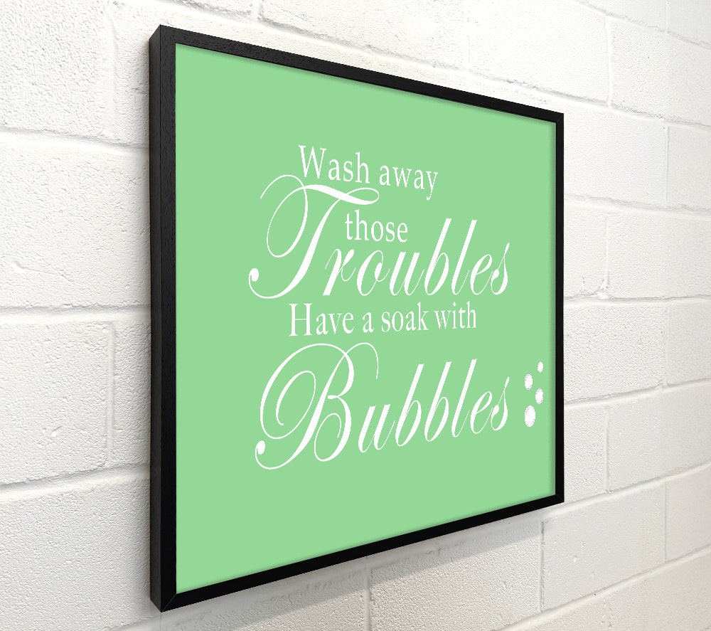 Bathroom Quote Wash Away Those Troubles Bubbles Green