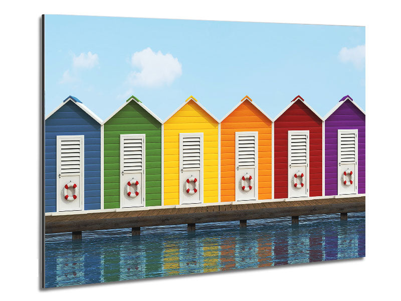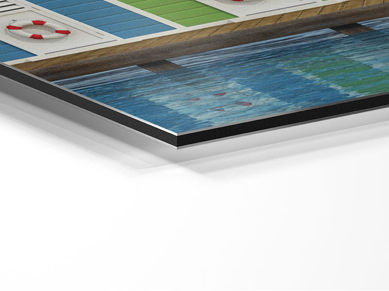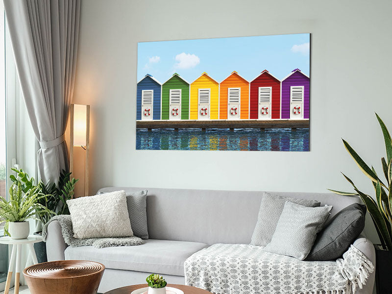 Beach Hut Ocean Printed on brushed aluminium dibond. A modern way to display art and easy to maintain.