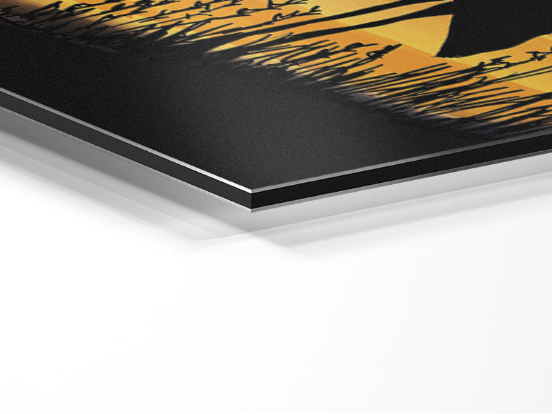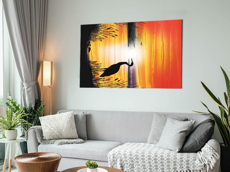 Beautiful Crane At Sunset Printed on brushed aluminium dibond. A modern way to display art and easy to maintain.