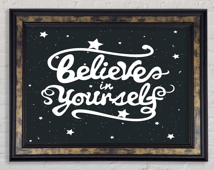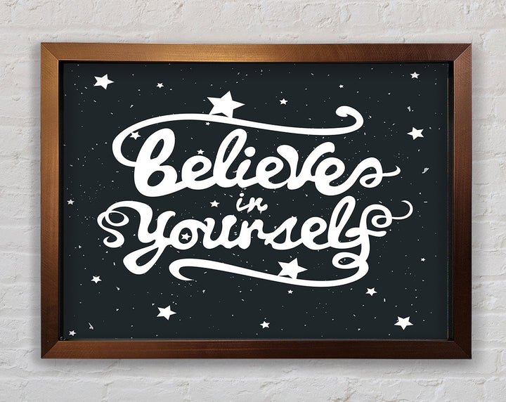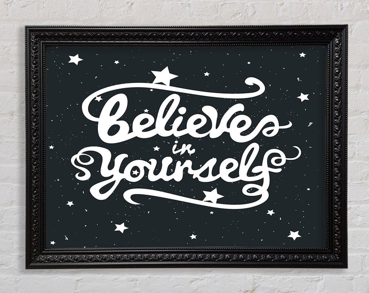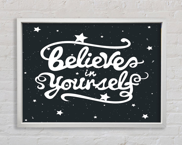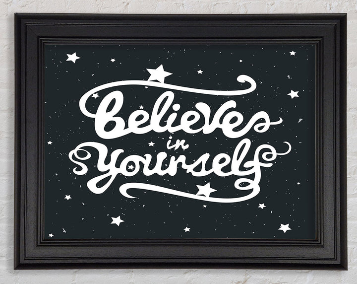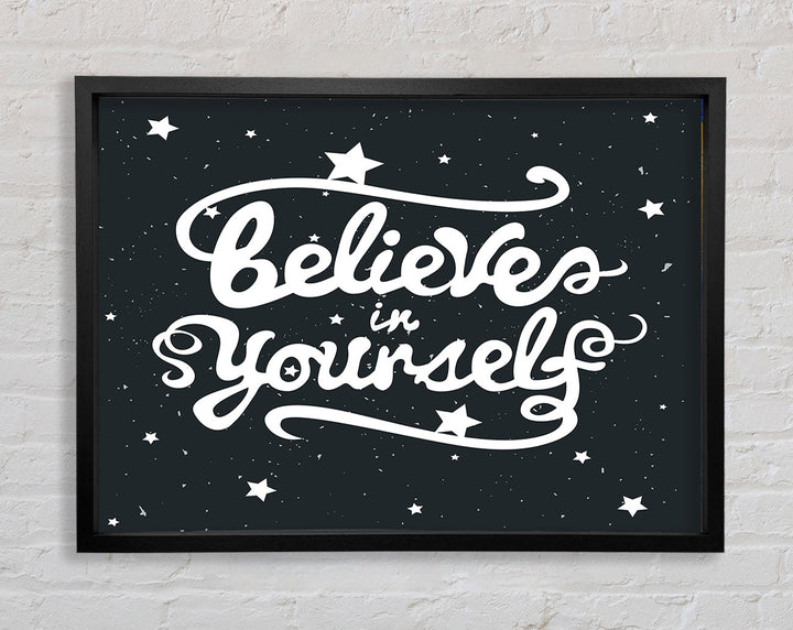 Introducing the Believe In Yourself Framed Print, a beautiful piece of framed art designed to inspire and uplift any space. Handmade in the United Kingdom, this high-quality print comes in six different sizes, ranging from small to oversized, ensuring there's a perfect fit for every room. The print is available in a variety of colors to match any decor style. Each piece is ready to hang, making it easy to add a touch of motivation to your home or office. Crafted with care, this framed art serves as a constant reminder to believe in yourself, blending encouragement with elegance.