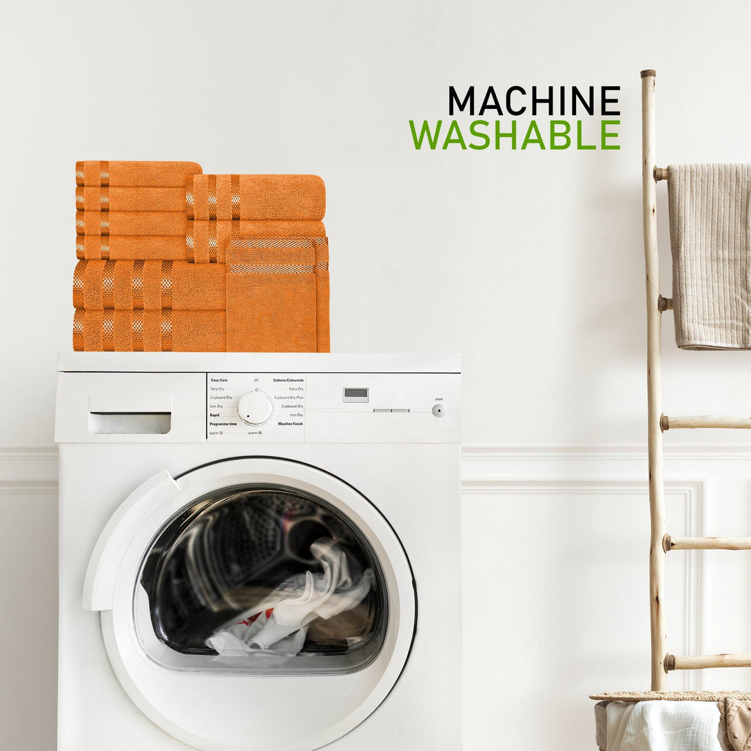 Belmont Viscose Stripe Orange Towels 100% Cotton Hotel Quality Super Absorbent 10 Piece Bale Set, 4 Hand Towel & 12 Face Cloths by OLIVIA ROCCO