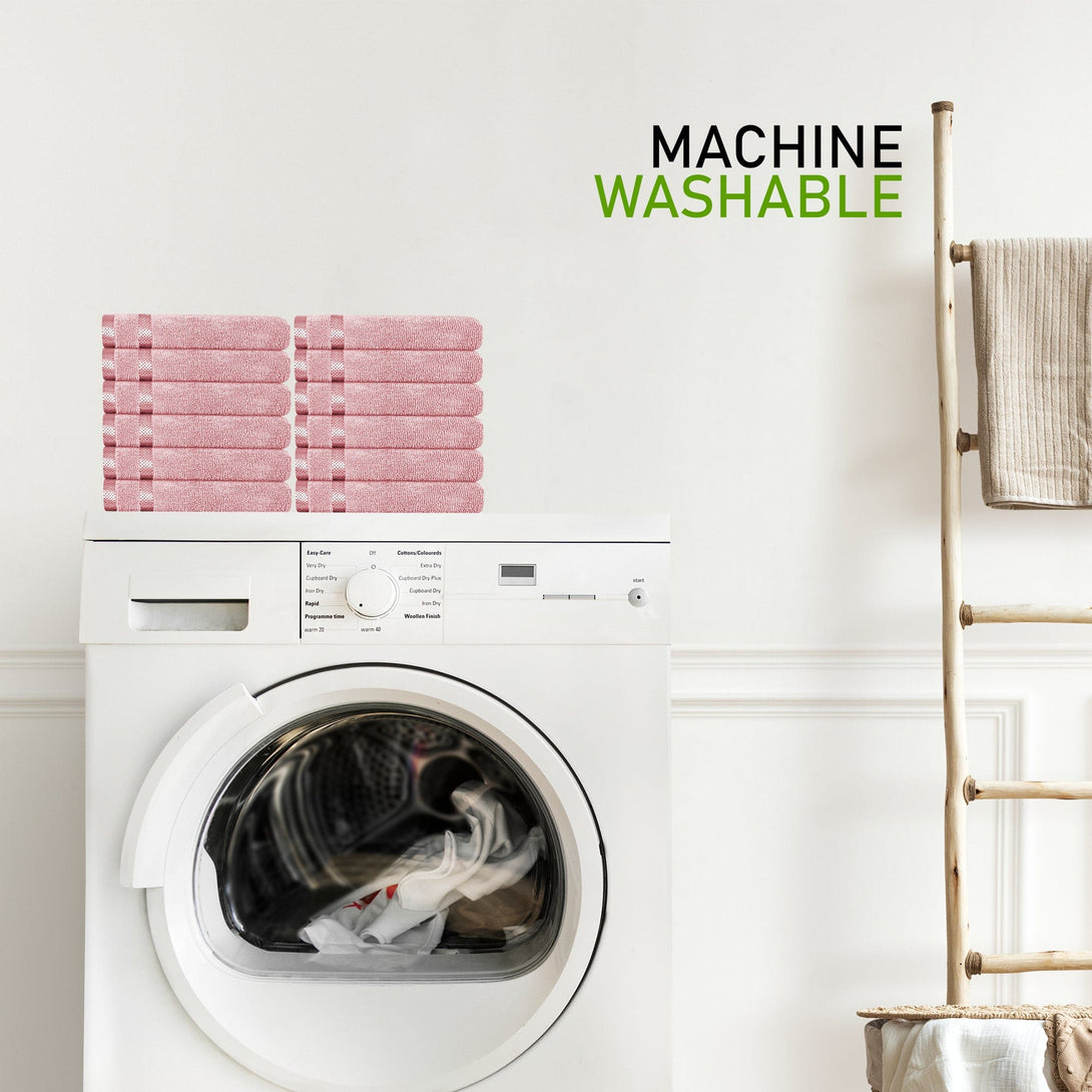 Available exclusively in classic pink, these towels provide a sleek and timeless look that complements any bathroom décor.