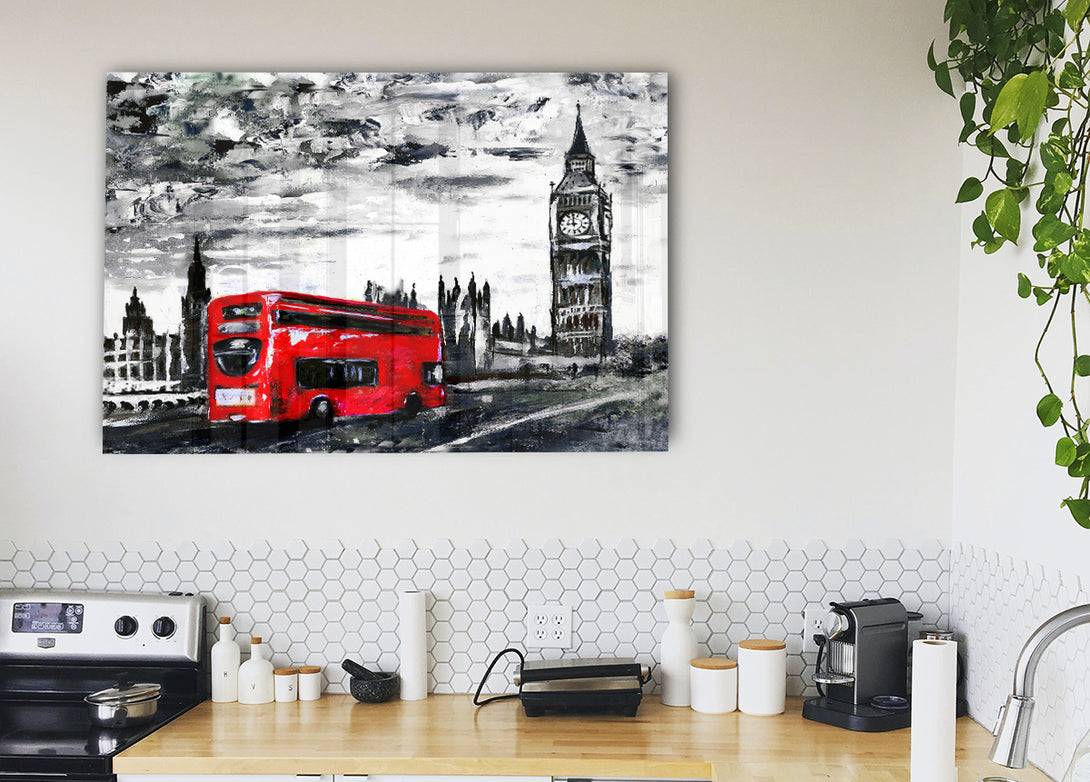 Big Ben Red Bus acrylic print, UV printed onto 5mm thick acrylic glass. Comes with everything you need to hang on your wall.