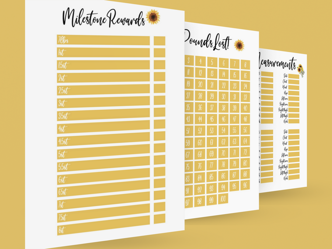 - 1x Pounds Lost Page (Up to 100lbs) – Visualize your progress as you track pounds lost over time.