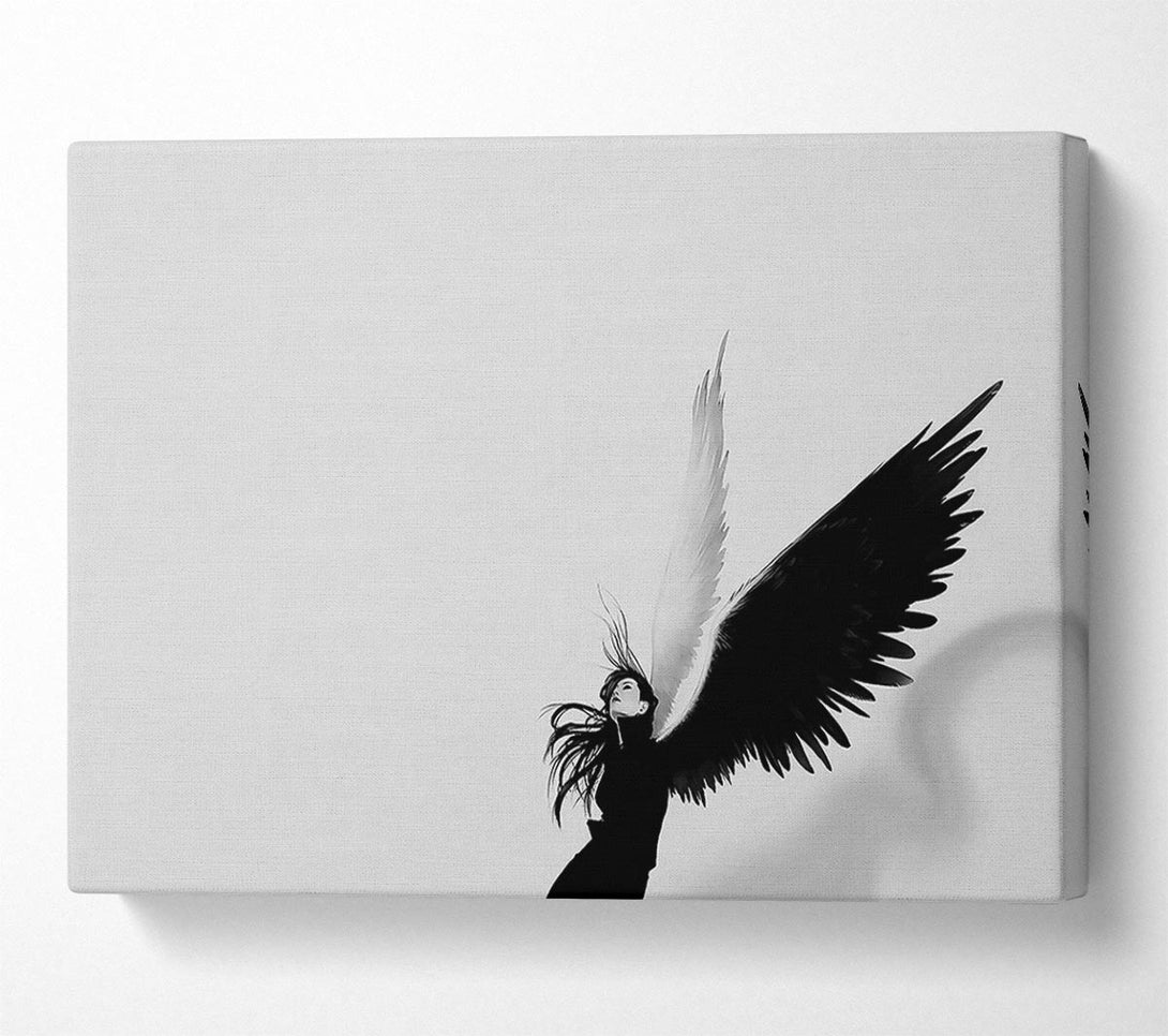 Available in five sizes, from small to oversized, you can find the perfect fit for your space. The high-quality canvas material ensures durability and a vivid, long-lasting image. Easy to hang, this canvas print is a hassle-free way to enhance your décor. Whether for a living room, bedroom, or office, the Black And White Angel Canvas Print is a timeless piece that will elevate any wall.