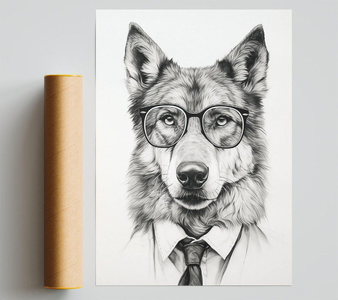 Our Black And White Wolf In Glasses Poster is printed 260 GSM premium lustre paper that offers vibrant colours and exceptional detail.
