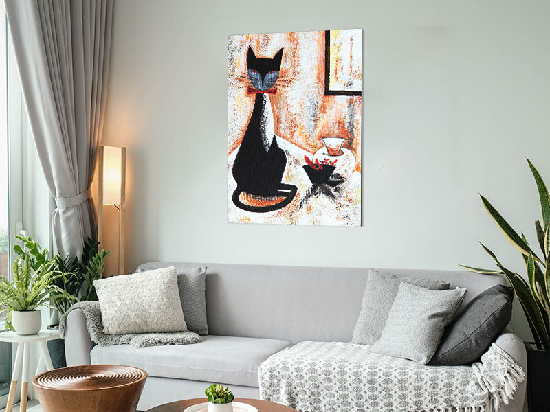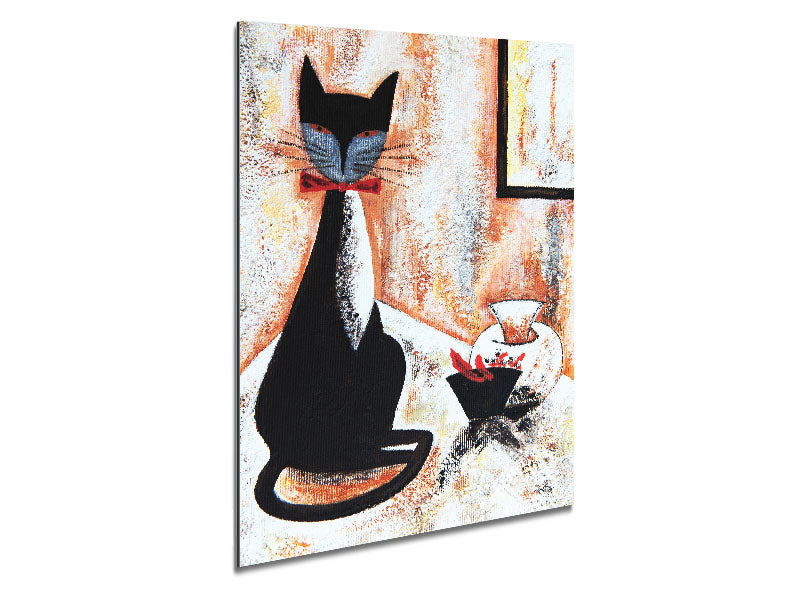 Black Cat Bow Tie Printed on brushed aluminium dibond. A modern way to display art and easy to maintain.