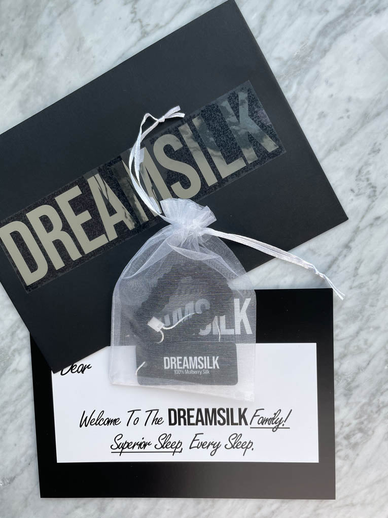 DREAMSILK's™ silk scrunchies that glide over your hair like moonlight over water.