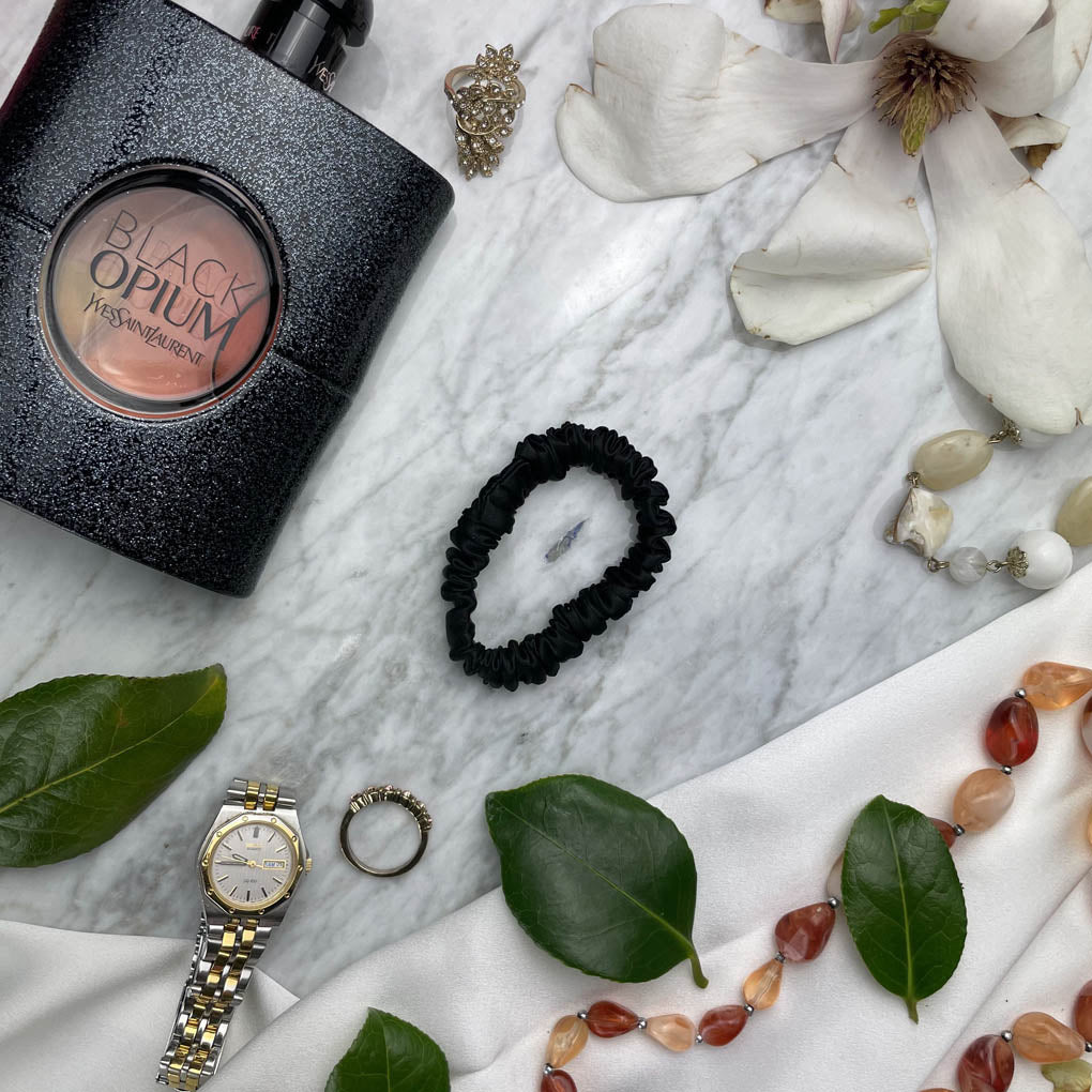 Black Silk Scrunchie - Skinny