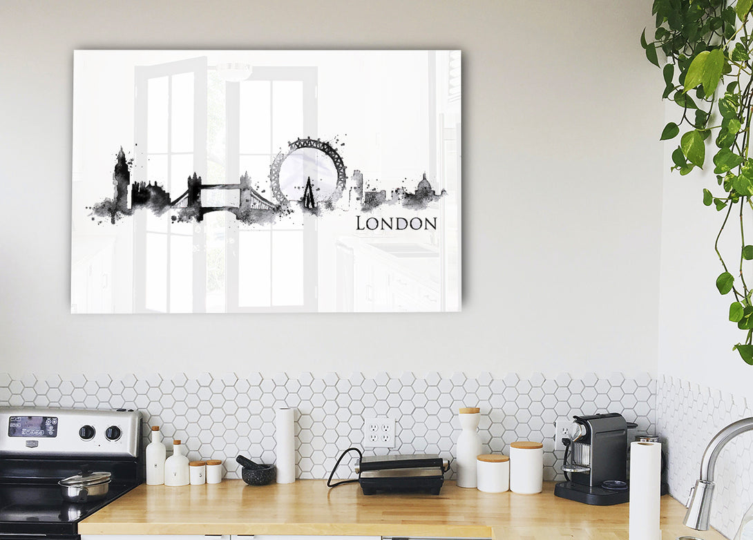 Black Splash City acrylic print, UV printed onto 5mm thick acrylic glass. Comes with everything you need to hang on your wall.