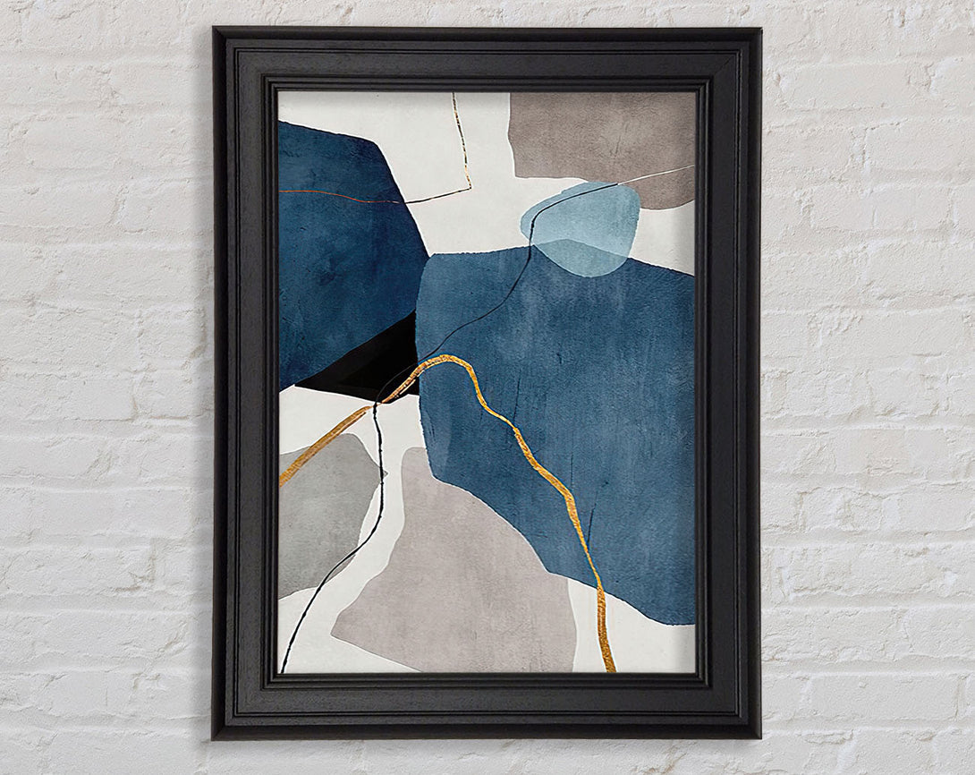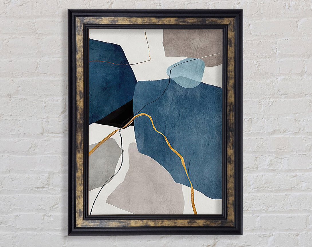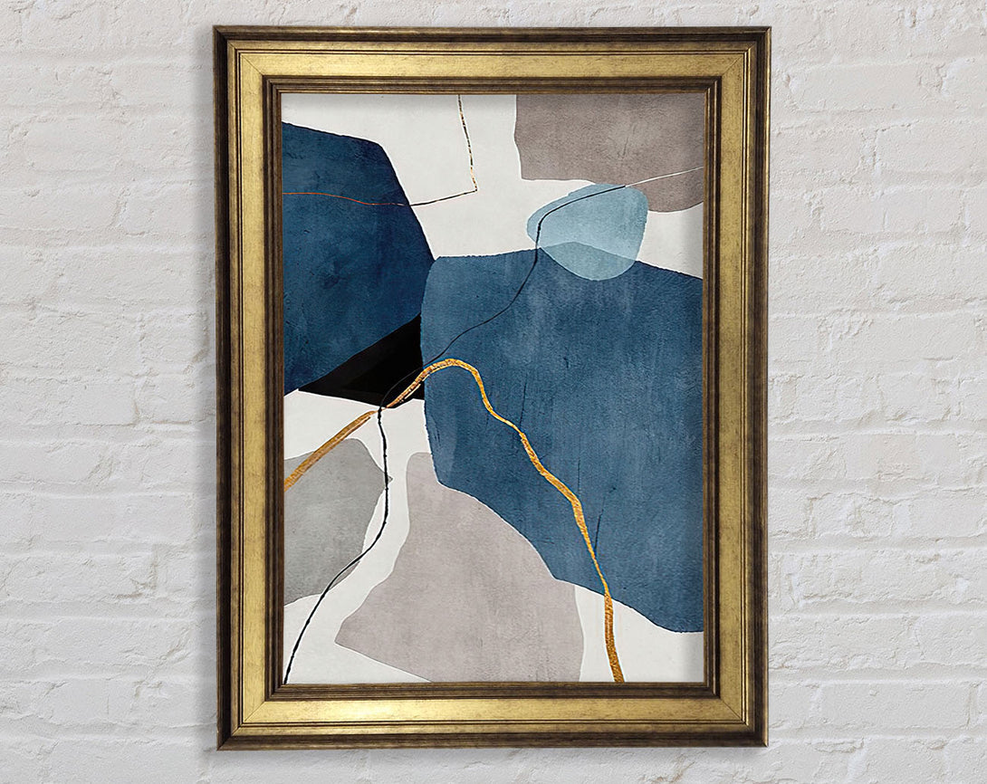 Blue Abstract Gold Framed Print