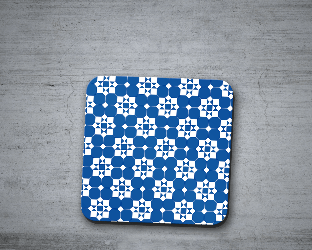 Blue and White Geometric Tiles Design Coaster, Table Decor Drinks Mat