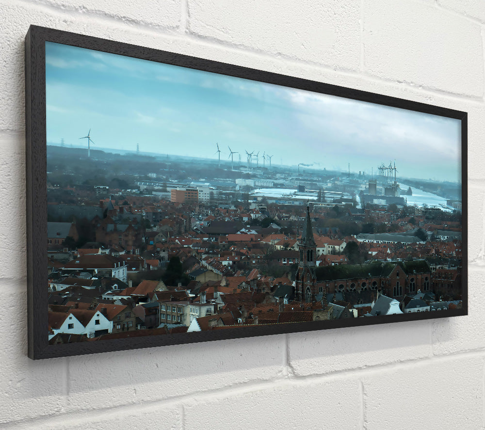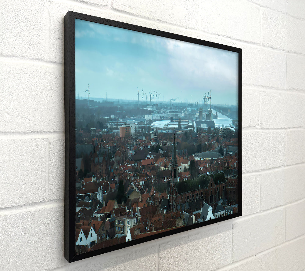 Blue Cityscape With Windmills