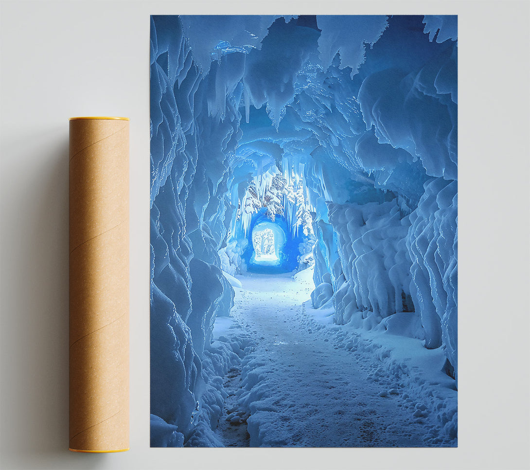 Our Blue Ice Tunnel Poster is printed 260 GSM premium lustre paper that offers vibrant colours and exceptional detail.