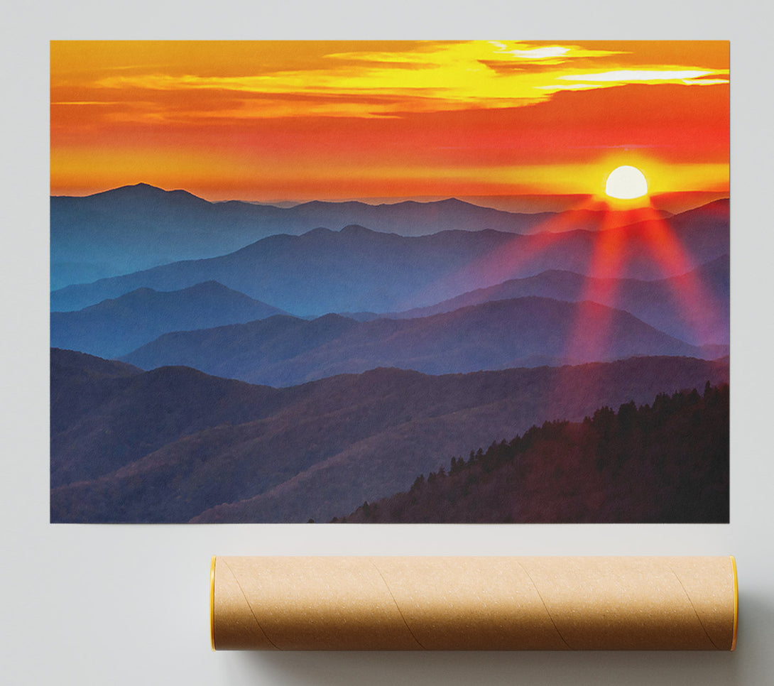 Our Blue Misty Mountain Sun 3 Poster is printed 260 GSM premium lustre paper that offers vibrant colours and exceptional detail.