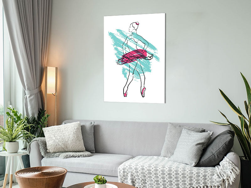 Blue Pink Ballerina 1 Printed on brushed aluminium dibond. A modern way to display art and easy to maintain.