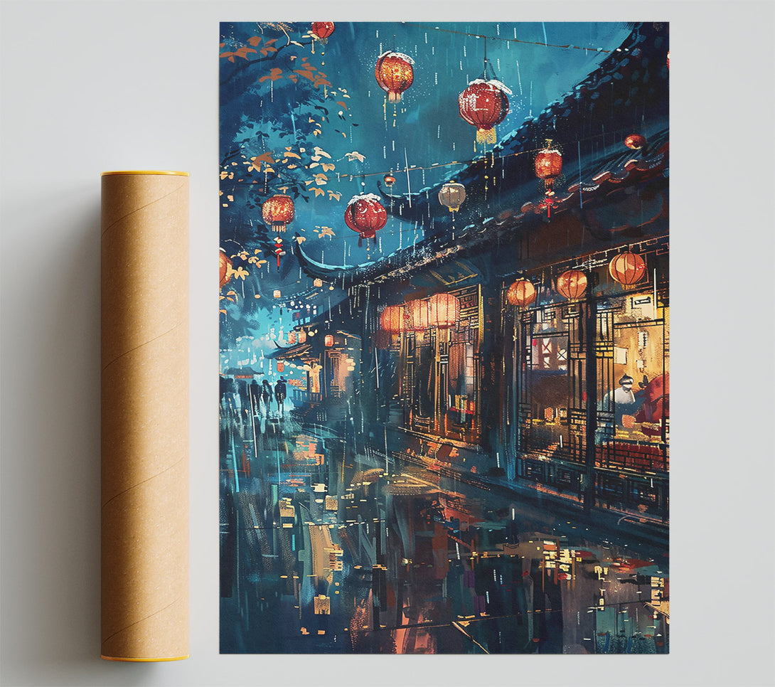 Our Blue Rain Lanterns Poster is printed 260 GSM premium lustre paper that offers vibrant colours and exceptional detail.