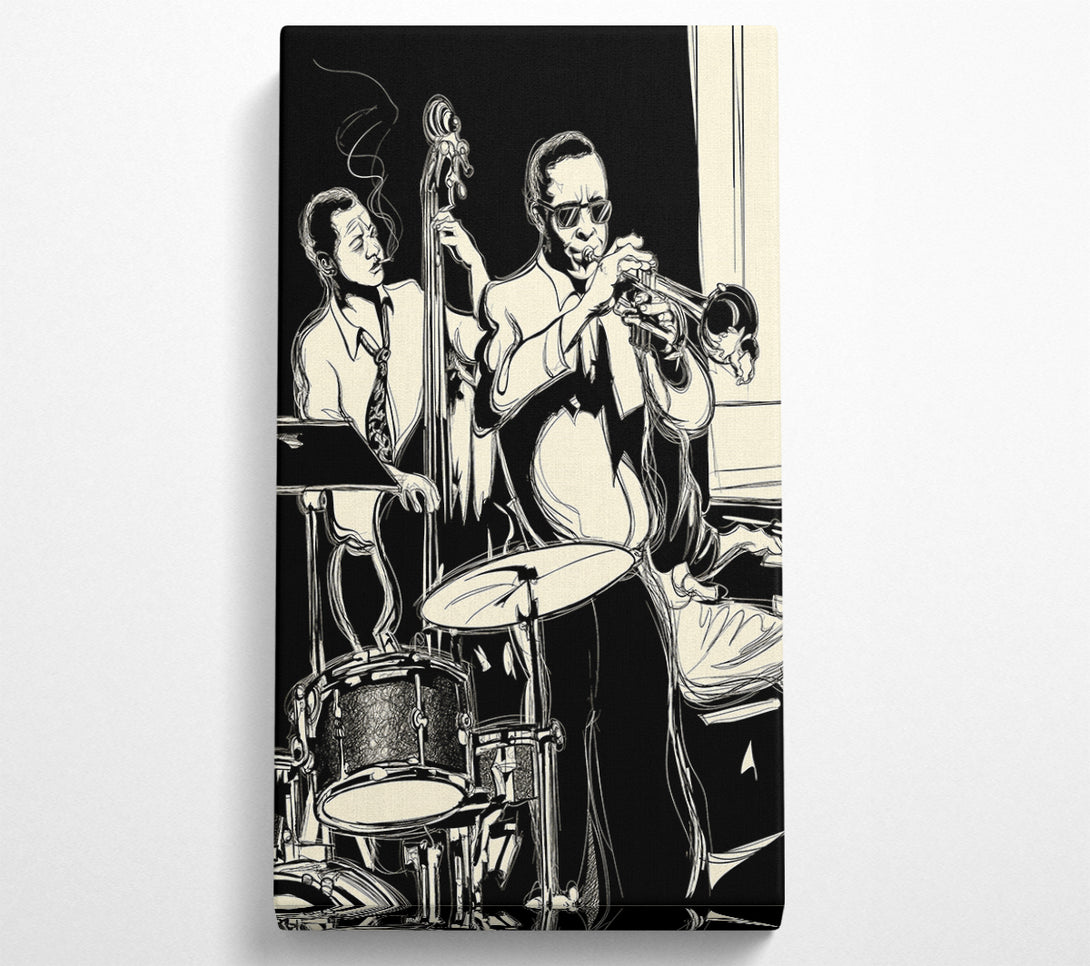 Blues Band wide canvas, printed on coated polyester canvas. Mounted on to a 44mm box frame, ready to hang.