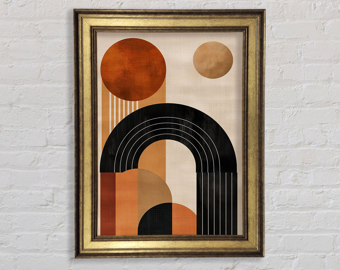 Boho Sun Geometric Lines Art Framed Print