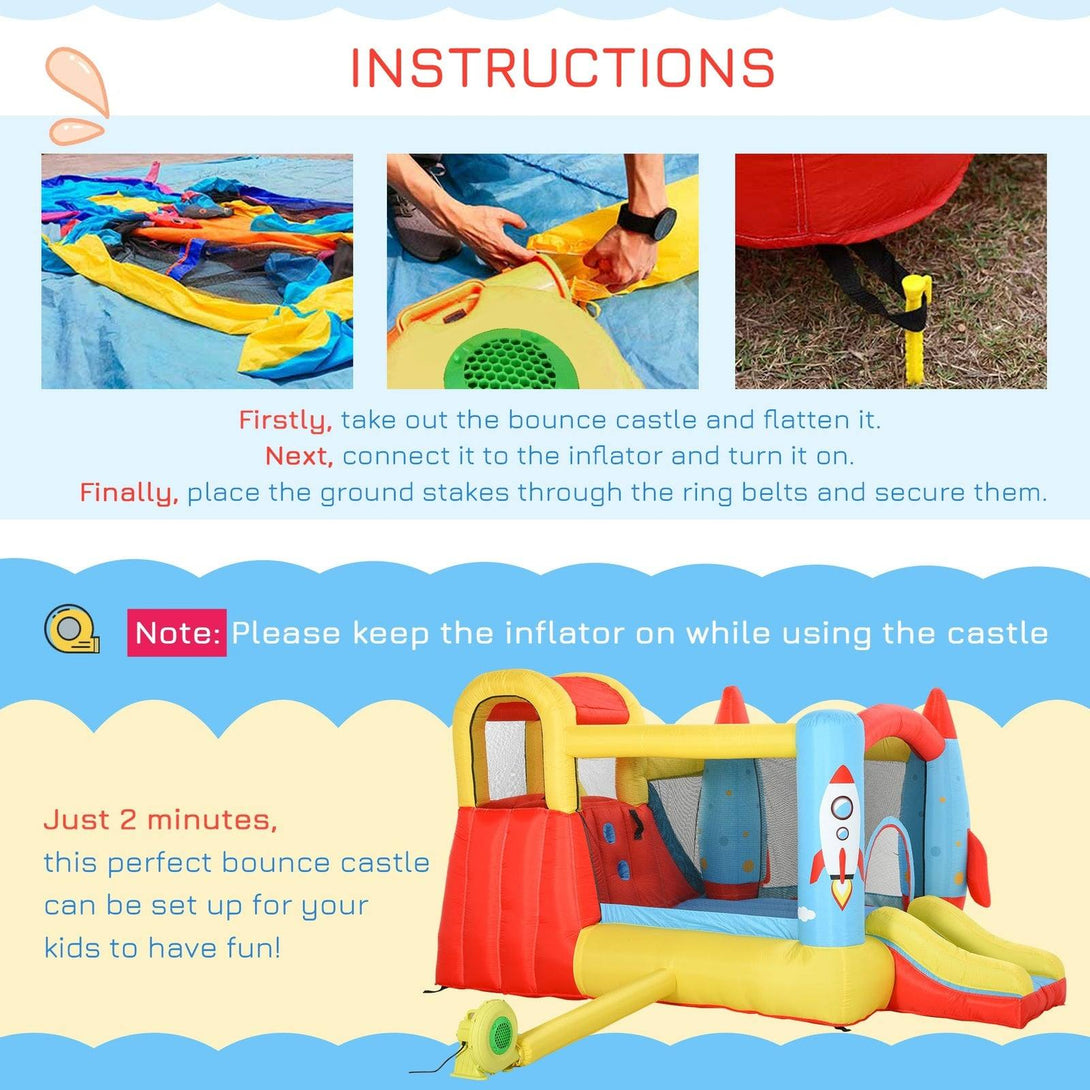 Bounce Castle Inflatable Trampoline Slide Pool Rocket Design 3.4 x 2.8 x 1.85m