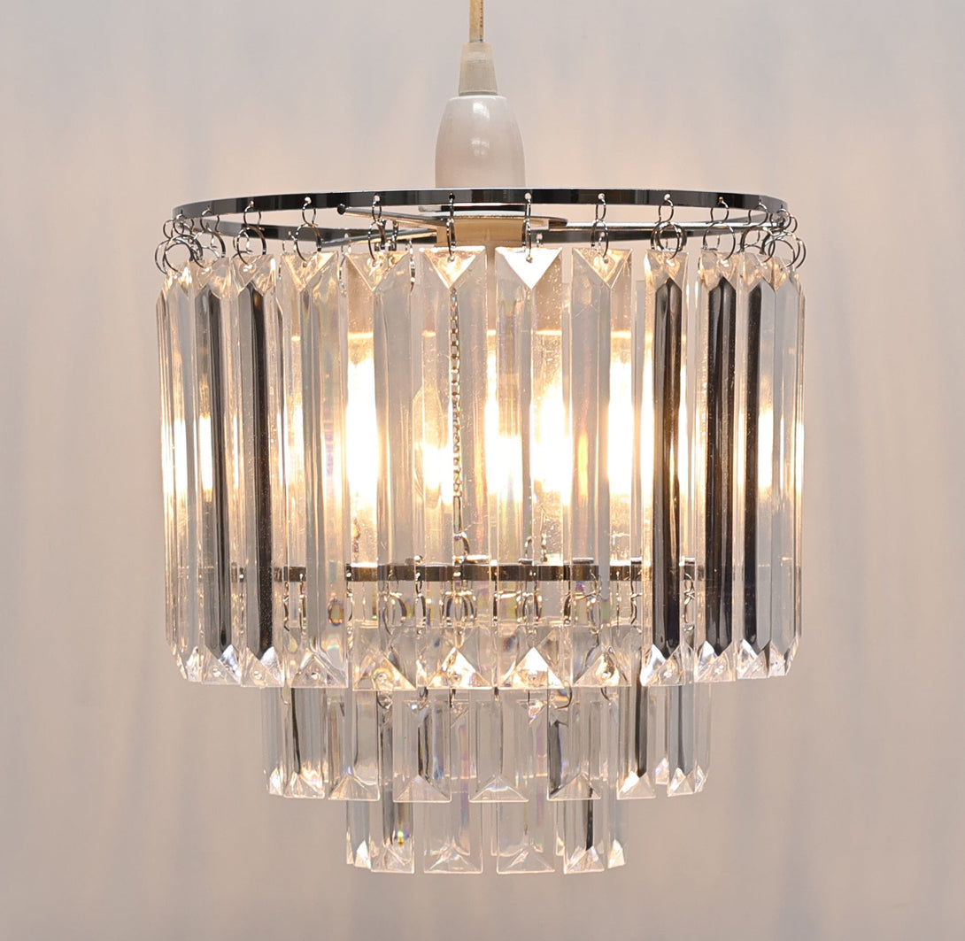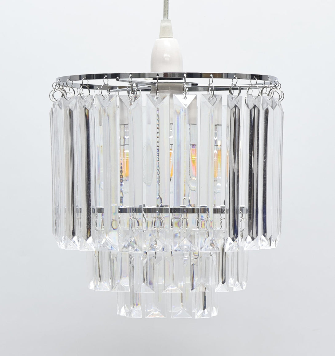 Add a touch of luxury to your lighting with the Bria Clear Easy-Fit Pendant, exclusive to Pagazzi. This elegant pendant features a striking 3-tier shade made from cascading clear acrylic prisms, creating a glamorous, light-reflecting statement in any space.