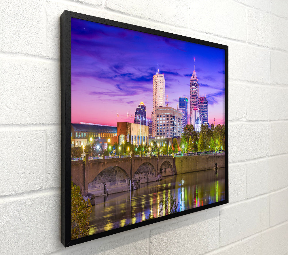 Bridge across the city at night