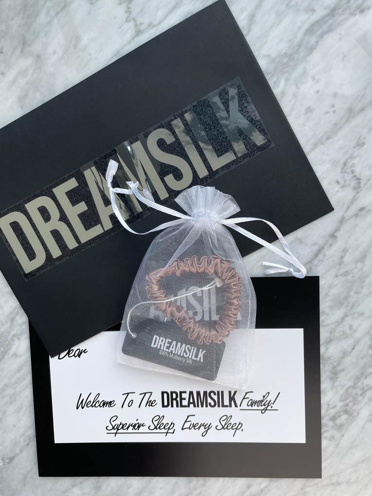 DREAMSILK's™ silk scrunchies that glide over your hair like moonlight over water.