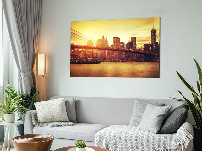 Brooklyn Bridge Splendour Printed on brushed aluminium dibond. A modern way to display art and easy to maintain.