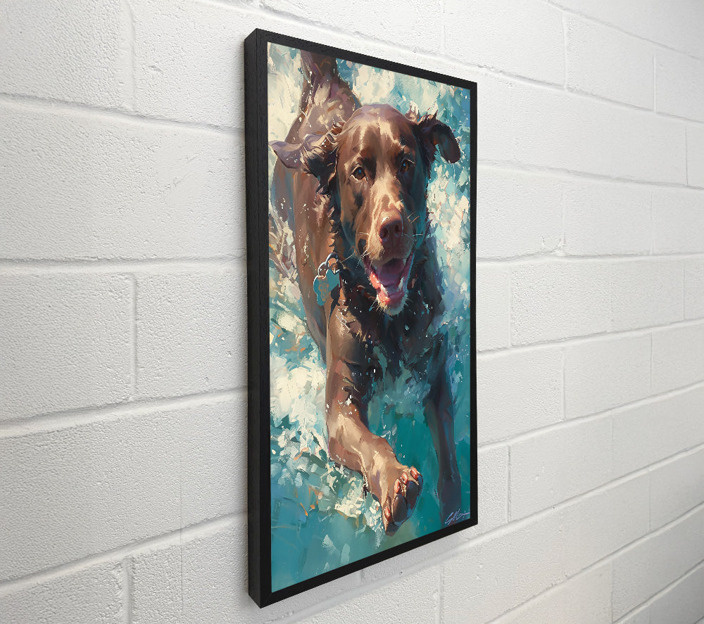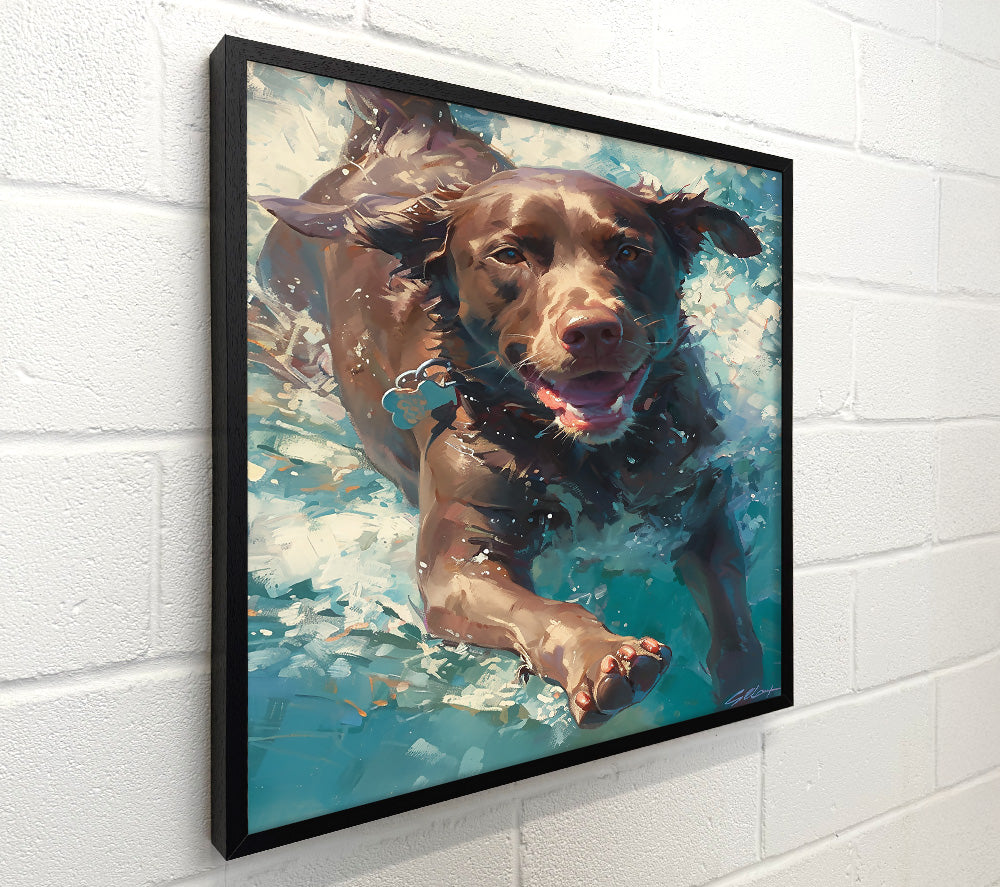 Brown Dog Splashing Blue