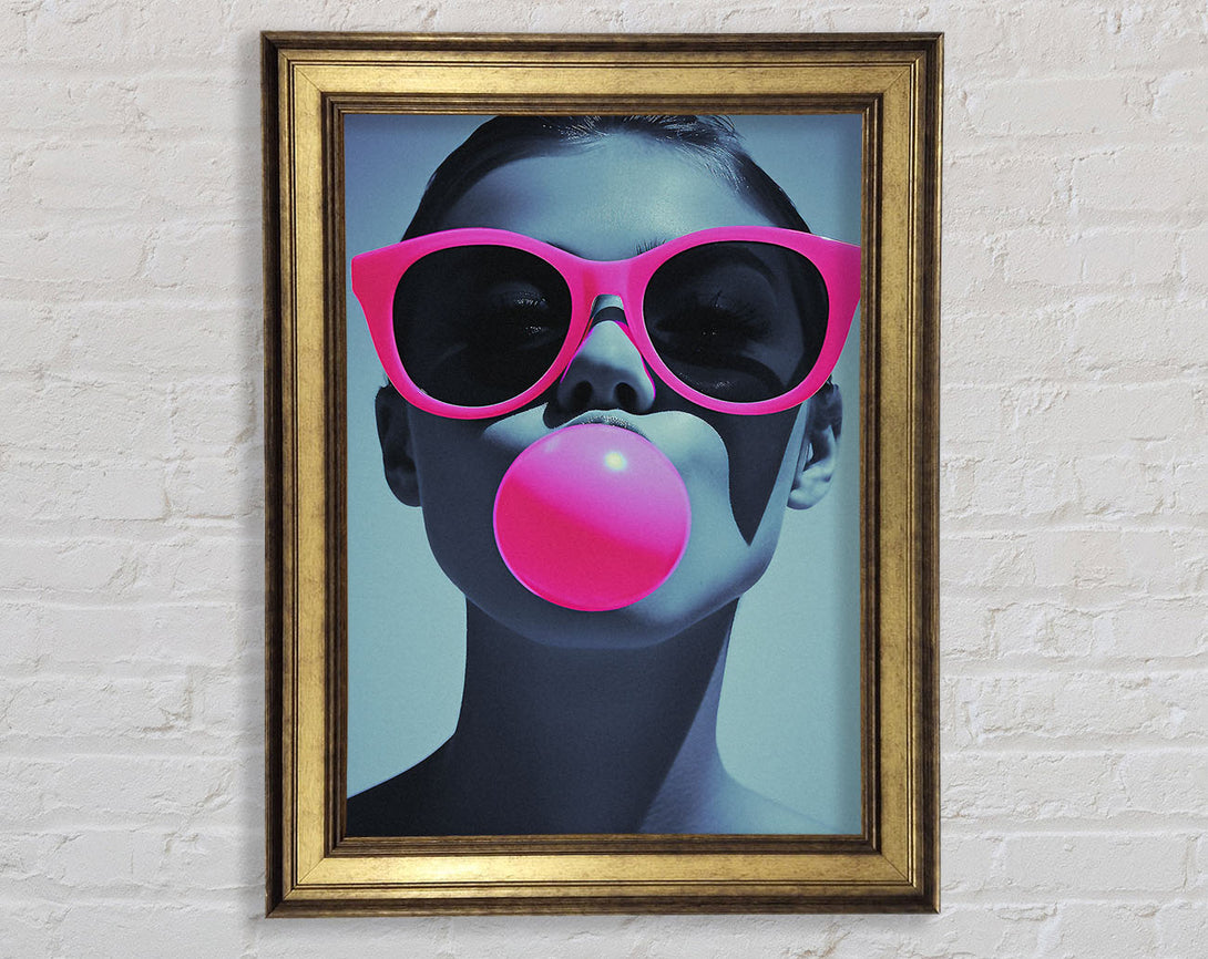 Bubble Gum Pink Sunglasses Woman Framed Print