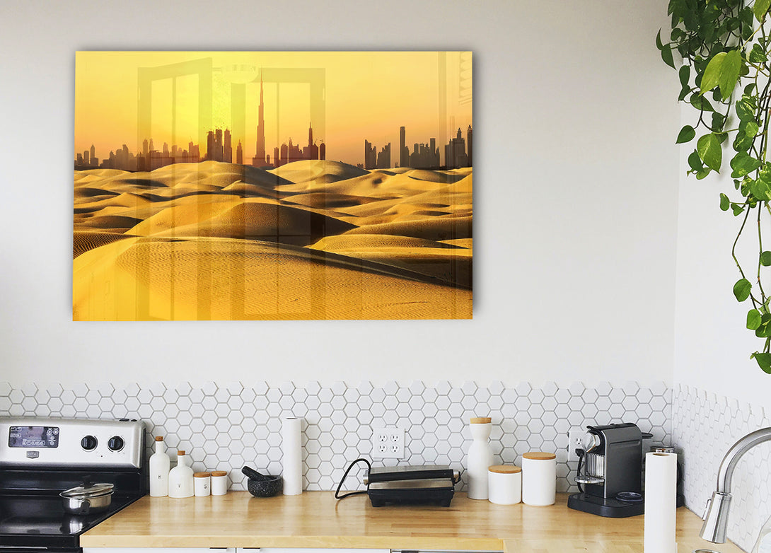 Burj Khalifa Golden Sunset acrylic print, UV printed onto 5mm thick acrylic glass. Comes with everything you need to hang on your wall.