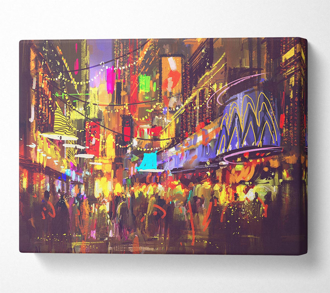 Transform your space with the Busy Shops At Night Canvas Print, a stunning piece of wall art that captures the vibrant energy of a bustling city after dark. This beautiful canvas features vivid colors and intricate details, bringing a lively atmosphere to any room. Available in five sizes, from small to oversized, it can fit perfectly in any space, whether it's your living room, bedroom, or office. Made with high-quality materials, the canvas print is durable and long-lasting, ensuring it remains a centerpiece for years to come. Easy to hang and maintain, it's the perfect addition to add a touch of urban charm to your décor.