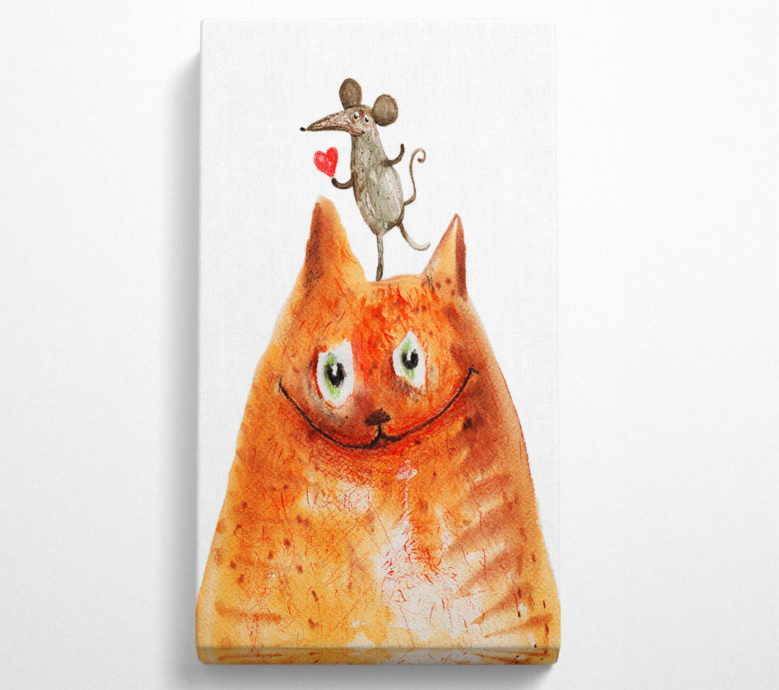 Cat And Mouse Love wide canvas, printed on coated polyester canvas. Mounted on to a 44mm box frame, ready to hang.