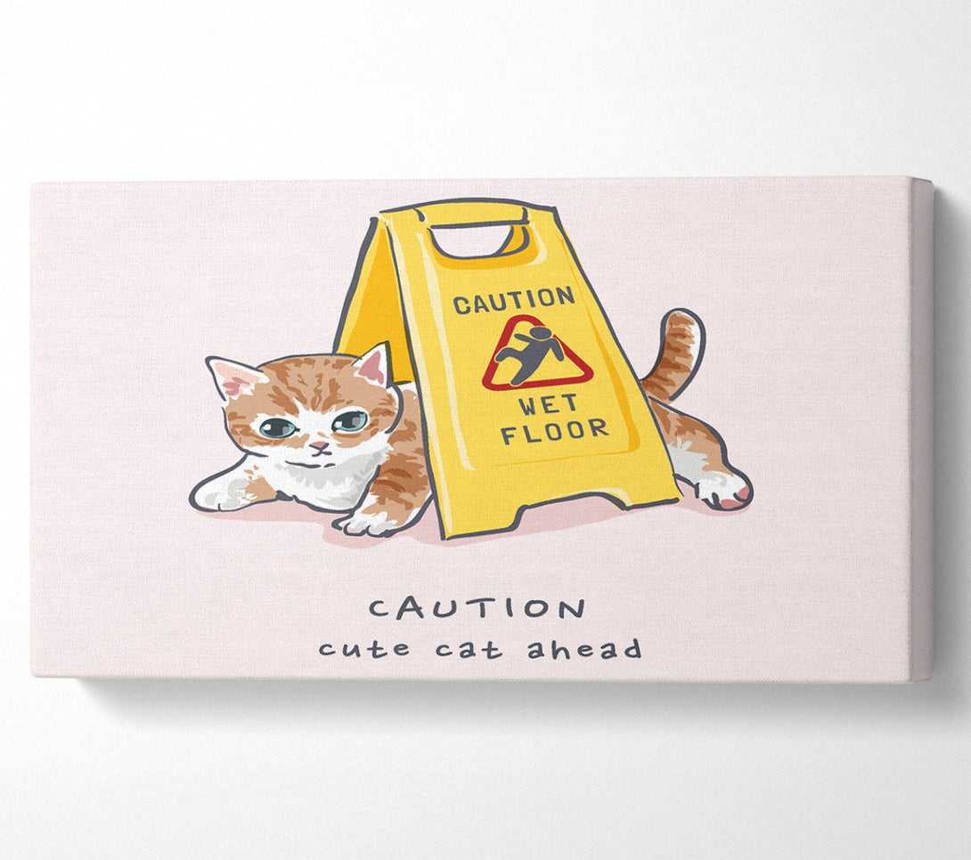 Caution Cute Cat wide canvas, printed on coated polyester canvas. Mounted on to a 44mm box frame, ready to hang.