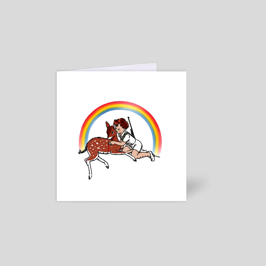 Ceal Warnants' greetings cards play on quaint British illustration pastiches, mixing them up with darkly comic modern insignia, from Nikes to the middle finger.