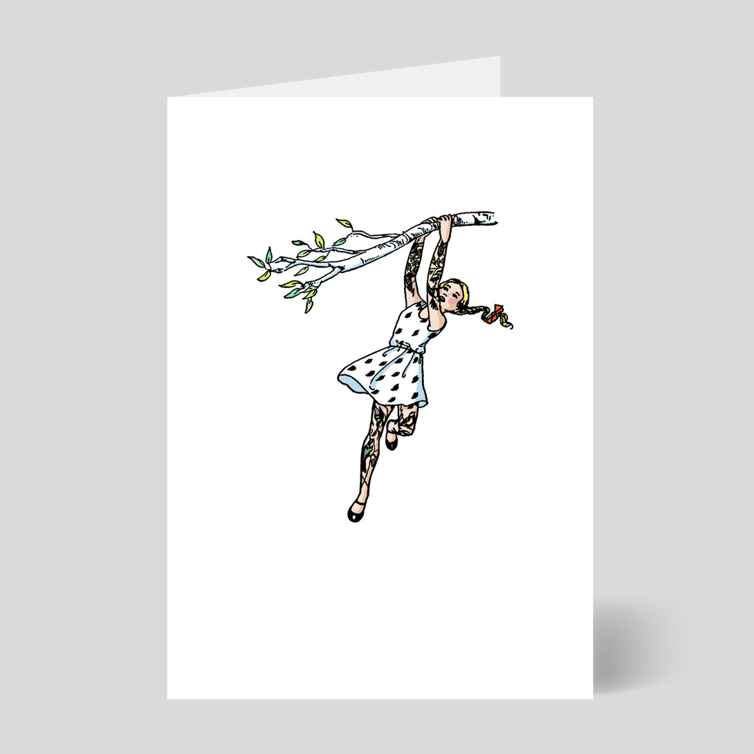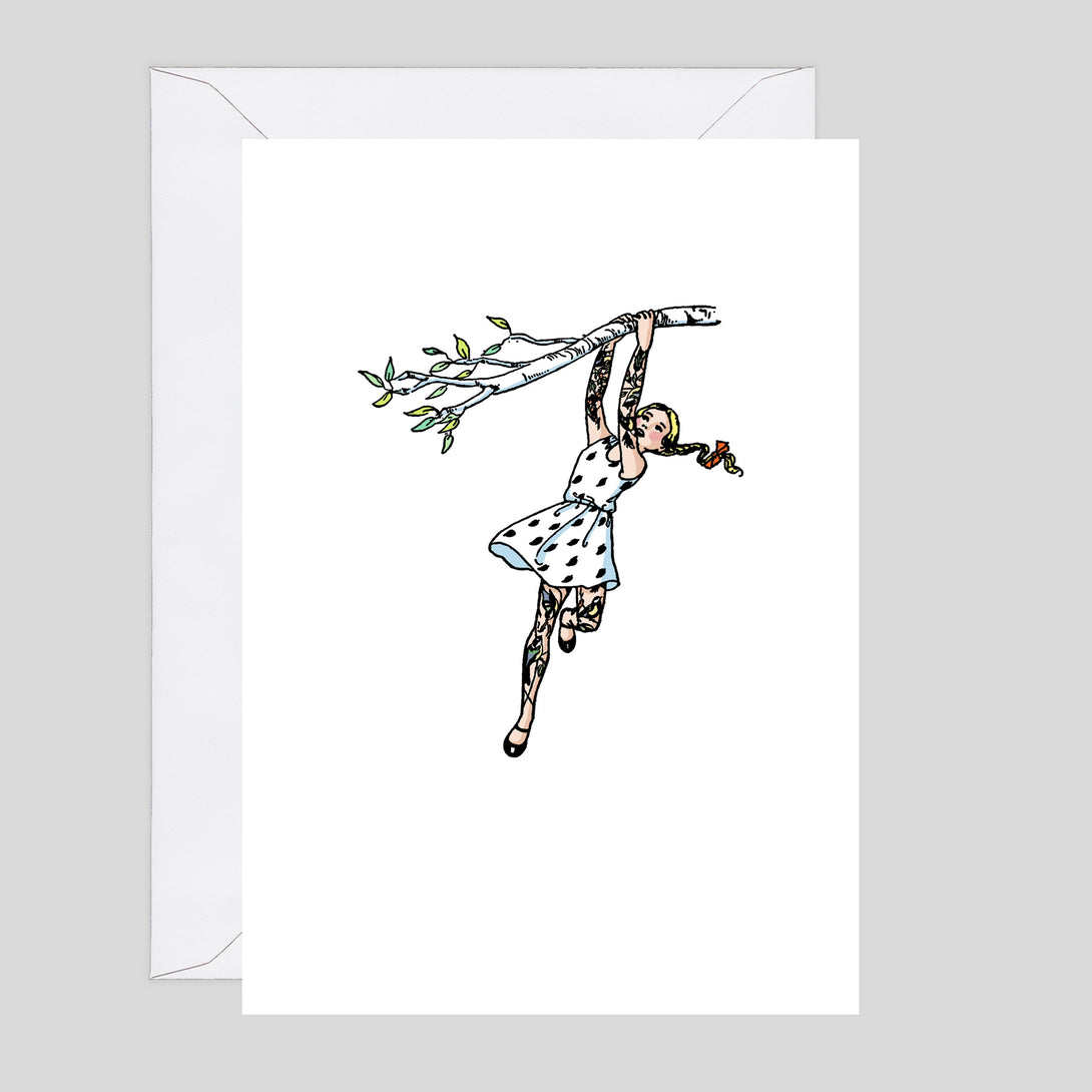 Ceal Warnants' greetings cards play on quaint British illustration pastiches, mixing them up with darkly comic modern insignia, from Nikes to the middle finger.