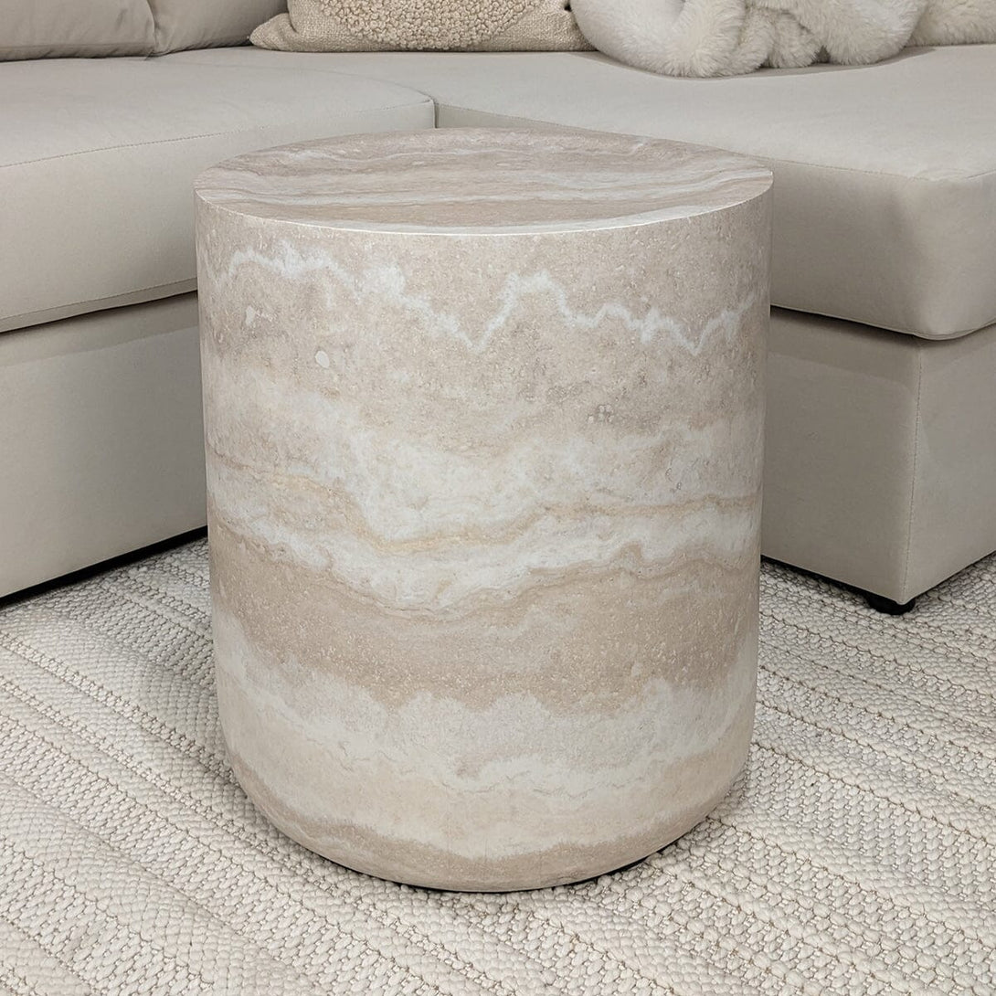 Celeste Round Neutral Marble Effect Side Table