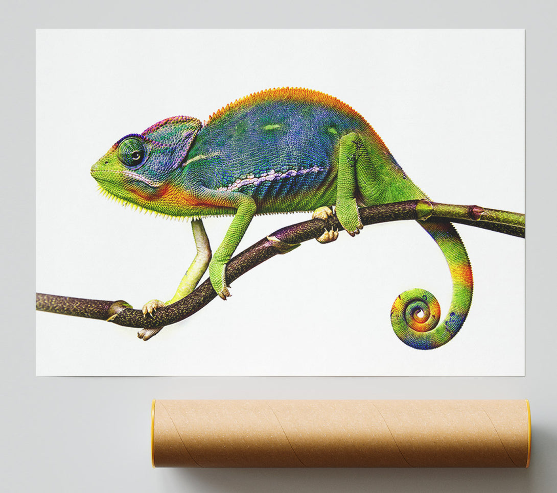 Our Chameleon Branch Poster is printed 260 GSM premium lustre paper that offers vibrant colours and exceptional detail.